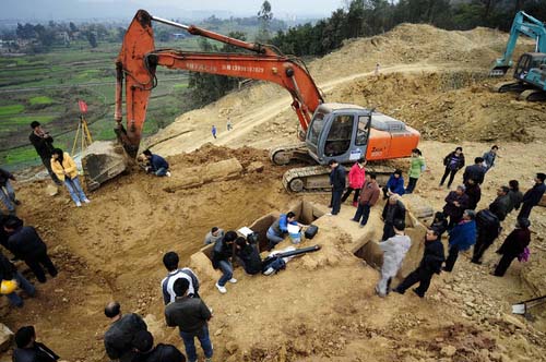 挖掘機(jī)意外刨出古墓