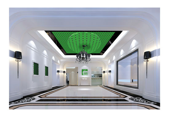 從綠蘋果瓷磚總部展廳的設(shè)計(jì)效果圖中可以看到,展廳的設(shè)計(jì)在延續(xù)前三個(gè)品牌大氣、莊重的風(fēng)格外,還將綠蘋果元素巧妙楔入,更讓人眼前一亮的是,綠蘋果瓷磚的設(shè)計(jì)師團(tuán)隊(duì)大膽地運(yùn)用了時(shí)尚的綠色,即綠蘋果瓷磚的標(biāo)準(zhǔn)色,點(diǎn)綴在天花板的設(shè)計(jì)上。從效果圖上看,這些綠色元素的點(diǎn)綴,行云流水般流暢,與莊重、簡(jiǎn)約的空間完美融合,同時(shí)使得冷硬的空間變得靈動(dòng)有致。