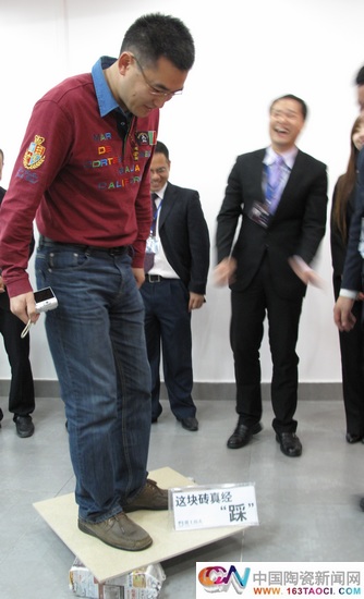 中新社記者親自試驗瓷磚抗折度