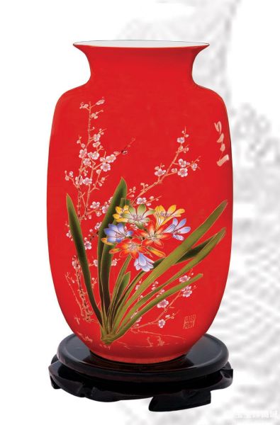 因紅的吉祥如意身,萬物欲與紅相和。博寶專家介紹,因?yàn)槭褂眉t色釉料“低溫不成紅,高溫則去色”的火候太難掌握,唐代之前中國瓷器是沒有紅色的。在本世紀(jì)初,經(jīng)過專家無數(shù)次的實(shí)驗(yàn),終于找到了極其珍貴的大紅色釉配方。結(jié)合醴陵釉下五彩的特色,燒制出釉色鮮紅、醇厚飽滿、典雅大氣、雍容華貴的紅瓷極品。博寶寶珍城的這件“將軍瓶 梅”充分體現(xiàn)了中國紅瓷的大紅特點(diǎn),紅而不妖,艷而不俗,再配以清風(fēng)傲骨的梅花,兩者交相輝映,襯托出優(yōu)雅古典的中國特色,實(shí)屬珍藏佳品。(博寶藝術(shù)網(wǎng)評論員 慕容依 撰文)