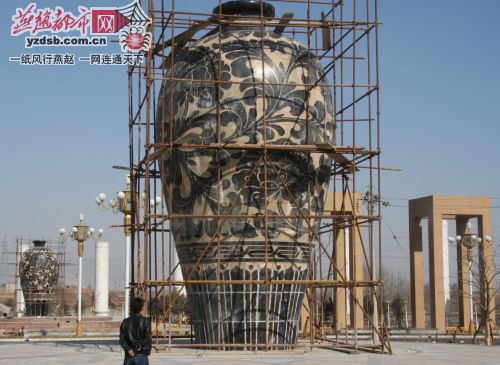 近日,峰峰礦區(qū)新城標(biāo)廣場(chǎng)的標(biāo)志性建筑之一——兩座巨大陶瓷梅瓶制作完成。據(jù)悉,這兩座陶瓷梅瓶坐落于新城標(biāo)廣場(chǎng)東西兩側(cè),高9.68米,最大直徑5.18米,共有486塊燒制陶體拼接而成,瓷體重36噸,是目前全國(guó)最大的陶瓷梅瓶。梅瓶制作采用了傳統(tǒng)的磁州窯紋飾,主題畫面為磁州窯傳統(tǒng)黑剔牡丹紋,腰線裝飾為富貴不到頭紋飾,底足為蓮花紋裝飾,寓意平安、富貴、吉祥。(通訊員張杰 記者陳正 攝)