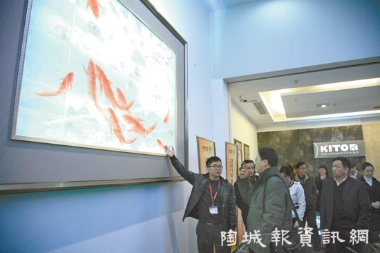 專(zhuān)家評(píng)委團(tuán)在金意陶參觀考察,企業(yè)人員向各位評(píng)委詳細(xì)介紹產(chǎn)品情況(潘炳森 周偉軍 攝)