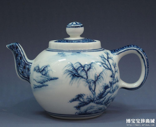 據(jù)博寶網(wǎng)了解到,瓷器收藏一直是收藏界的熱門,出自名家之手的景德鎮(zhèn)瓷器更是非常搶手。作為我國的瓷器之鄉(xiāng),景德鎮(zhèn)的瓷器能夠經(jīng)久不衰就是一代又一代瓷器制作者以傳世的技藝和精良的制作的不懈努力。博寶寶珍商城里展示的這件青花山水紋壺是出自景德鎮(zhèn)汪淑珍之手,主題選用山水畫作為主體,刻畫精美,畫面淡雅靈動,形神俱到,意境深遠,非常適合于投資收藏。