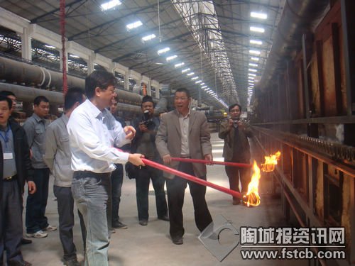 羅董事長與何書記熱情洋溢、鼓舞人心的精彩致辭,引起了在場嘉賓朋友們的熱烈掌聲。隨后,主持人楊總盛情邀請:“藤縣縣委書記何棠、縣長黃東明、副書記潘希初、常務(wù)副縣長藍(lán)盛新、人大副主任蒙土金、副縣長蔡聰、金舵企業(yè)羅董事長、新舵公司羅董事長、新舵公司總經(jīng)理楊根銓”共同為1#窯爐和3#窯爐點火。熊熊的窯爐烈火燃燒起來了,廣西新舵陶瓷有限公司點火成功!兩串大紅爆竹從地上一直上升到窯爐車間廠房的頂部,預(yù)示著公司的集團(tuán)化發(fā)展將一飛沖天,火紅而上。