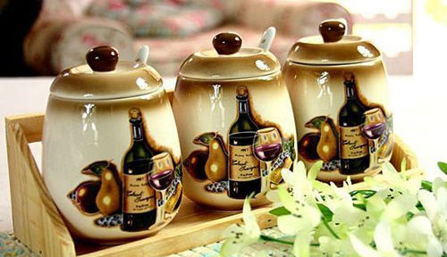 手繪陶瓷 紅酒系列調(diào)味罐4件套