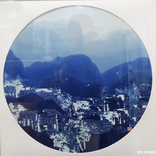 羅小聰老師偏愛表現(xiàn)民居題材,這源于他質(zhì)樸純潔向往自然的精神追求。這一件在博寶寶珍商城展出的青花剃青瓷板《美麗家園》,畫面呈現(xiàn)出秀潤寧靜的獨特美感,觀眾既可以通過朦朧起伏的山巒感受到村野的濕潤氣息,又可以透過充滿生活氣息的民居建筑體會到小村的安寧祥和,一草一木都清晰地呈現(xiàn)在觀眾眼前,展現(xiàn)出無窮的藝術(shù)魅力。博寶藝術(shù)網(wǎng)評論員夏末撰文)