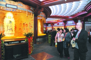 4月30日,在天寧寶塔落成開光4周年之際,寶塔第二層眾緣和合殿正式開放。作為全國第一個(gè)瓷佛殿,眾緣和合殿匯聚了國內(nèi)罕見大型瓷壁畫、“中國白”大體量瓷佛組像等,堪稱國寶級(jí)藝術(shù)精品。
