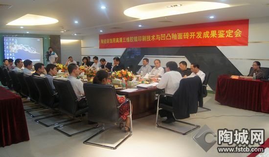 圖為宏宇集團(tuán)高清三維膠輥印刷技術(shù)與凹凸釉面磚科技成果鑒定會(huì)現(xiàn)場(chǎng) 袁國(guó)強(qiáng) 攝