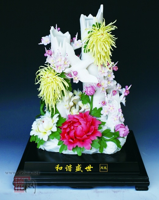 “中國龍瓷”品牌作品以傳統(tǒng)雕塑瓷,紅釉、結(jié)晶釉、漆線雕瓷、手捏瓷花及手工繪畫花草等為主要代表。而“一家人”陶瓷則是集實(shí)用、裝飾、觀賞為一體的日用陶瓷系列精品。其以刻劃花、印花、堆貼、透雕及手工繪畫花草等獨(dú)特裝飾韻味的工藝,展示了傳統(tǒng)陶藝與現(xiàn)代理念、東方瓷藝與西方文化相結(jié)合的獨(dú)特瓷藝風(fēng)格,體現(xiàn)了最具深厚的當(dāng)代意識和現(xiàn)代氣味相結(jié)合的陶瓷文化,在琳瑯滿目的日用瓷壇上獨(dú)樹一幟。