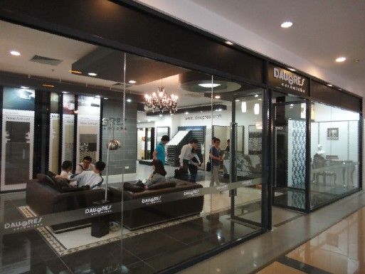 作為中國瓷質(zhì)釉面磚行業(yè)的領(lǐng)軍者,道格拉斯瓷磚始終遵循“把意大利高品質(zhì)的最新產(chǎn)品不斷引入中國”的經(jīng)營理念。道格拉斯歐洲館展廳設(shè)計(jì)以專業(yè)展架為主,設(shè)計(jì)師把握住了商務(wù)和閑適的文化定位,展示風(fēng)格以休閑為基調(diào),混搭西班牙式、意大利式和中式風(fēng)格,多用圓形、直線、幾何圖形等設(shè)計(jì)元素,以古銅黑、煙灰為主色調(diào),格調(diào)高雅;正門口的新品travotinowood,進(jìn)口墻磚(玫瑰花)色彩絢麗,釉面流光溢彩,非常搶眼。整個(gè)展示搭配相得益彰,愈顯道格拉斯意大利品牌風(fēng)范。道格拉斯還特別為意向客戶奉上茶葉和浴巾,與客戶建立友好關(guān)系, 而非生硬地單純做生意,拳拳誠意言溢于表。