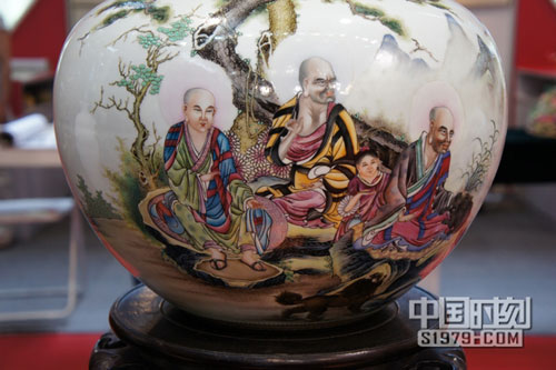在第七屆文博會非物質(zhì)文化館,景德鎮(zhèn)陶瓷展示區(qū)不但有制作精湛的瓷器欣賞,還有工作人員進(jìn)行現(xiàn)場表演。