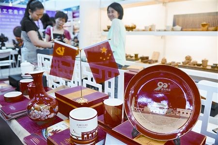 在文博會期間,一批慶祝中國共產(chǎn)黨成立九十周年的紀(jì)念陶瓷精彩呈現(xiàn),受到文化藝術(shù)界的關(guān)注,成為文博會亮點。記者今天在非物質(zhì)文化遺產(chǎn)館看到了我省文化產(chǎn)業(yè)項目“湖湘名品工程”攜手紅色官窯醴陵聯(lián)手創(chuàng)作推出的精美陶瓷。據(jù)參展方介紹,這是建黨瓷·光輝歷程系列首次亮相文博會。