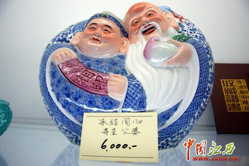 瓷展作品之永結(jié)同心。(江西網(wǎng)記者 邱輝強(qiáng) 攝)