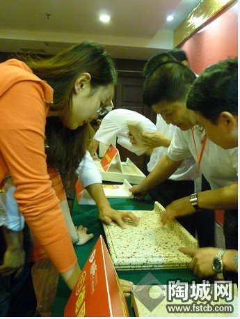將此次會(huì)議推向高潮的則是新品揭幕及現(xiàn)場(chǎng)鑒賞環(huán)節(jié),在現(xiàn)場(chǎng)所有嘉賓倒數(shù)五個(gè)數(shù)后,新品鑒賞區(qū)幕布徐徐拉開,一款款石英石、玉晶石系列新品驚艷亮相在觀眾面前,大家紛紛涌向新品區(qū),一睹行業(yè)風(fēng)向產(chǎn)品芳容。