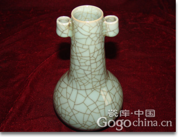圖:龍泉官窯青瓷粉青開片貫耳藝術(shù)花瓶