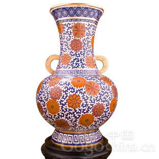 圖:景泰藍(lán)13寸仿青花環(huán)耳瓶