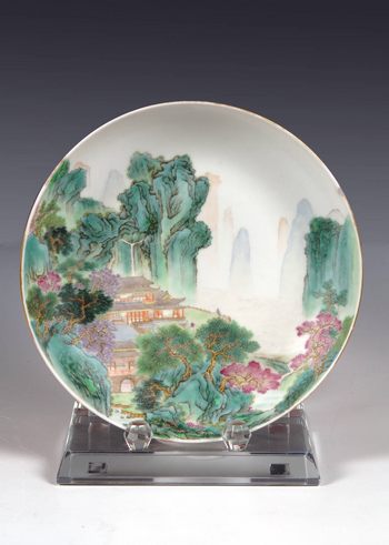 堂名款系指瓷器上書寫或刻劃私人住所或書房名稱,作為私家用瓷或收藏標志的款識,內容包括堂名、齋名、軒名、室名、書房名、樓名,閣名等。堂名款最早出現(xiàn)于宋代,明代后期形成風尚,清代則更為流行,民國時期繼續(xù)出現(xiàn),但已不及清代豐富。民國堂名款具有以下幾個特征:首先是一些達官貴人用瓷多有堂名,如袁世凱的“居仁堂制”、徐世昌的“靜遠堂制”、曹錕的“延慶樓制”等。這些瓷器均為當時名家所造,史載,1923年軍閥曹錕曾出重金聘潘旬宇彩繪文具,但是否所有署“廷慶樓制”款識的皆為曹錕用瓷,或皆為潘氏所繪尚需考證。這部分堂名款均以印章形式出現(xiàn)在作品的底部。其次是文人雅士多有堂名,尤其是彩瓷名家, 如潘甸宇之“古歡”、王琦之“甸甸齋”、程意亭之“佩古齋”等。從嚴格意義上說,這類款識應稱為藝人畫室款識為妥。這部分款識見有印章形式,書寫在器物的外底,亦有與書法款識相結合書在器物的外壁,而以后者居多。更為常見的是以書法形式的綜合性堂名款識,如張志湯的“星江張志湯寫于珠山亦陶齋西窗”。既有籍貫、姓名,也有齋名。由于這類款識已在人名款中加以介紹,故不再贅述。民國時期瓷器上署以堂名的器物較為多見,情況亦較為復雜,最為關鍵的是不能以款識中是否有“齋”、“軒”等字樣便定性為堂名款。因民國時期瓷器生產(chǎn)廠商號之名亦多見“軒”、“堂”、“齋”等字樣。貌似堂名,實則為商號,與主人的關系不大。如活躍于1920-1937年的彩瓷名家梁兌石,民國初年畢業(yè)于饒州窯業(yè)學堂,回南昌后開麗澤軒瓷店,請藝人按顧客要求繪制瓷器,由于忙于經(jīng)營,無暇自己彩繪。當時的南昌名家劉希任作品多被麗澤軒購買,而鄒文侯、萬云巖均曾受聘于麗澤軒瓷店彩繪。
