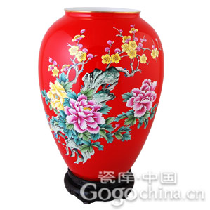 圖:中國紅瓷 精品手繪國色天香蓮子缸