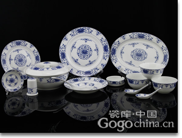 圖:會(huì)議禮品·吉祥相伴景德鎮(zhèn)青花釉中彩骨瓷56頭餐具碗盤