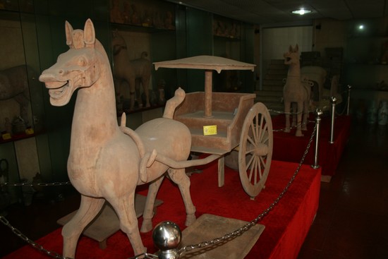 成都岳漢古器博物館重點(diǎn)展示了新津的高溫紅陶、灰陶以及各類漢代磚棺。從漢陶的種類看,分為人物、動(dòng)物、器具幾類,人物有武士、官吏、農(nóng)民、樂舞藝人等,動(dòng)物有馬、牛、羊、豬、狗等,器具有車馬、農(nóng)具、搖錢樹等。這些民間雕塑,造型簡潔,富有神韻,極具生活趣味。