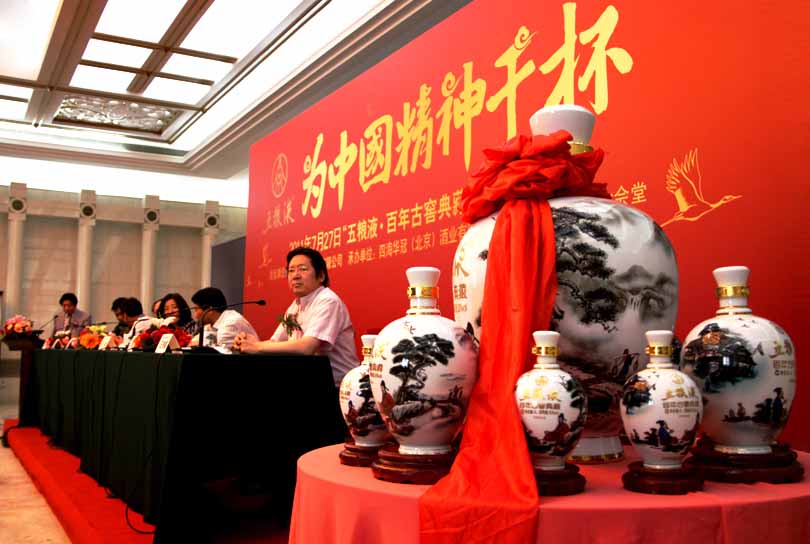 2011年7月27日,宜賓五糧液集團(tuán)有限公司在人民大會堂隆重舉行新聞發(fā)布會,推出一款極具里程碑意義的館藏級古窖老酒——“五糧液•百年古窖典藏”酒。據(jù)悉,該款酒的酒瓶,就是中國首個陶瓷奢侈品品牌、被譽(yù)為當(dāng)代官窯的“紅官窯”特別出品。
