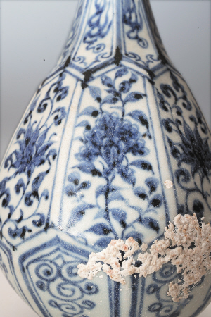 古詩有云:“人生在世不稱意,明朝散發(fā)弄扁舟”。詩中“明朝”本指明天,蘊含古人超越凡塵,以一葉扁舟擺渡精神家園的淡然一笑。然而,也有人違迕其意,“明朝”若以朝代解釋,可能契合元青花塵封600余年的廖寂歲月。