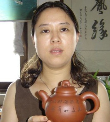 何燕萍,1970年生. 1985年進廠隨父學習制壺技術(shù),1988年進中央工藝美術(shù)學院深造,因從小耳濡目染,靈巧聰慧,進步極快。在造型方格上繼承父親的流派,造型講究且全器予人深圓凝重,力度感強,樸致大方,紫砂藝術(shù)壺頗具神韻,儼然有其父之風,深受各方好評。1998年再次進中央工藝美術(shù)學院深造,《晨瓢壺》在2000年第二屆中國工藝美術(shù)優(yōu)秀作品評選獲銅獎。