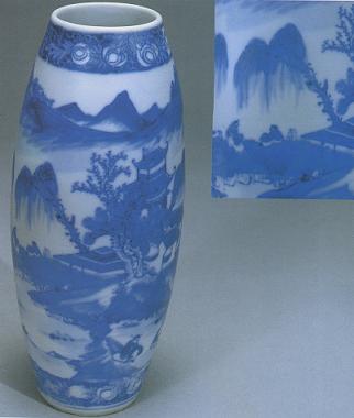 圖:光緒青花山水橄欖瓶