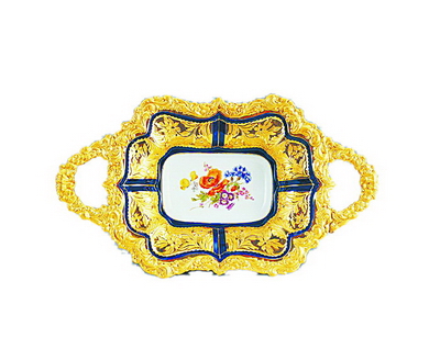 最早的歐洲瓷器,是由現(xiàn)今德國境內(nèi)的邁森制造的。德國邁森瓷,被譽(yù)為“白色黃金”,是德國傳統(tǒng)高檔商品中的第二大知名品牌,僅次于保時(shí)捷跑車,就連一個(gè)小小的咖啡杯也有60歐元。此次展覽中,展出的邁森瓷器雖然數(shù)量不多,卻件件精品,無論質(zhì)量、造型和裝飾風(fēng)格均相當(dāng)出眾,如描金浮雕花卉紋大盤和描金浮雕開光花卉圖雙柄盤,胎質(zhì)細(xì)膩光潔、釉色晶瑩、描金圖案繁復(fù)精細(xì),極致奢華美麗。