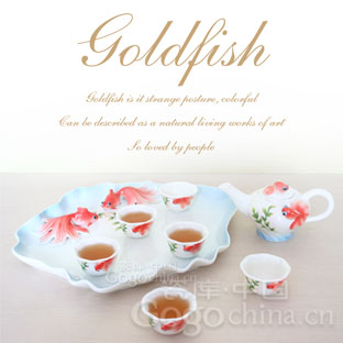 圖1:商務禮品·琺瑯瓷藍彩富貴紅鯉魚高檔禮品功夫茶具