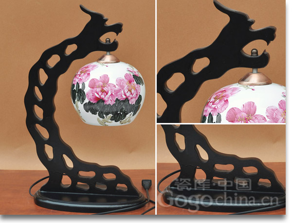 圖:陶瓷工藝臺燈·景德鎮(zhèn)手繪粉紅玫瑰薄胎陶瓷臺燈