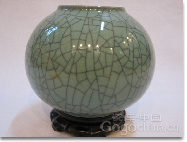 圖:龍泉青瓷哥窯開(kāi)片天球瓶