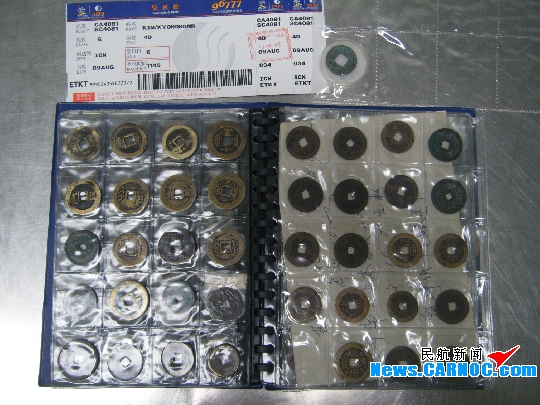 民航資源網(wǎng)2011年8月9日消息:8月9日11時(shí),青島流亭國(guó)際機(jī)場(chǎng)(簡(jiǎn)稱“青島機(jī)場(chǎng)”)查處一名韓國(guó)籍旅客在行李中私藏夾帶中國(guó)文物,截獲大量燕明古錢幣及陶器、字畫等珍貴文物。