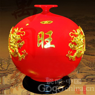 圖:家居飾品-中國紅漆線雕天地方圓家旺高檔花瓶