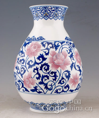 圖:瓷器禮品·手繪青花釉下五彩纏枝牡丹精品花瓶