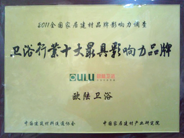 歐陸衛(wèi)浴榮獲2011年度“衛(wèi)浴行業(yè)十大最具影響力品牌”稱號