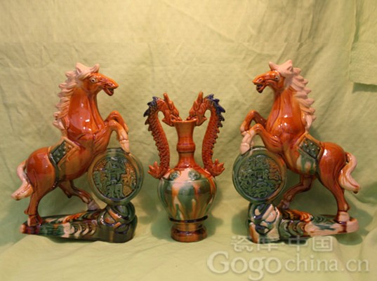 唐三彩是在洛陽邙山的唐代墓葬中發(fā)現(xiàn)的一種陪葬的冥器。自其出土?xí)r起就成了全世界矚目的焦點(diǎn)。唐三彩工藝禮品的輝煌在唐代貴族的陪葬典制中就可見一斑,現(xiàn)在國際上最為受歡迎的唐三彩工藝品為三彩馬,其中又以白三彩和黑三彩為最名貴。