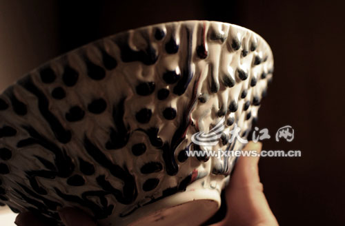 據(jù)制作者童治亮介紹,相較普通陶瓷,窯變具有不確定性,也就是結果無法預料。和其他陶瓷不同,窯變陶瓷沒有兩件一樣的作品,窯變使得這種陶瓷具有稀缺性。童治亮告訴記者,目前燒制的窯變陶瓷分三大系列,花瓣釉、流彩釉、蛛絲釉。