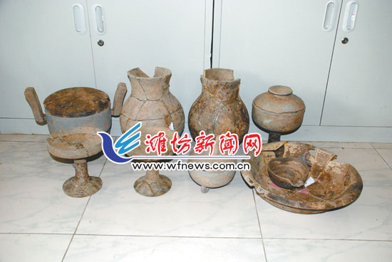 很快青州市文物局專(zhuān)家趕到現(xiàn)場(chǎng),考古人員經(jīng)過(guò)勘察推測(cè),這些瓶瓶罐罐可能是戰(zhàn)國(guó)時(shí)期的陶器,距今已有2000多年歷史,由于年代久遠(yuǎn)所以有些已經(jīng)殘缺或破碎,他們隨即將這些陶器小心翼翼地全部挖了出來(lái),共出土了九件陶器,其中陶敦、陶匜非常完整,其余的都?xì)埲辈灰弧?/p>