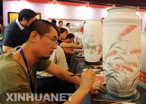 7月31日,陶瓷藝術(shù)家在現(xiàn)場(chǎng)繪瓷。
