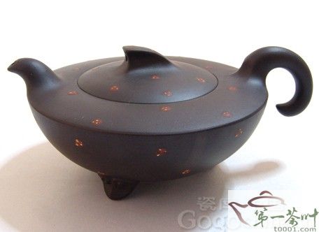 而在紫砂壺裝飾中有一項(xiàng)裝飾很特殊的,就是在紫砂茶壺上包裹一層錫皮,稱錫包或砂胎包錫,這種風(fēng)格曾在清代道光年間有過(guò)短暫時(shí)間的流行,F(xiàn)在我們所能見(jiàn)到的最早的包錫紫砂壺為朱石méi所制。朱石méi是清嘉慶、道光年間人,有人說(shuō)他“將紫砂與錫、玉工藝相結(jié)合,別開紫砂工藝的生面”。為什么要在紫砂壺上包裹一層金屬?起因應(yīng)該是當(dāng)收藏者所喜愛(ài)的或有收藏品價(jià)值的茶壺有所破損時(shí),為了彌補(bǔ)和挽救所作的相應(yīng)方法。當(dāng)口面開了縫時(shí)就在口上包一條線,壺嘴斷了用玉石代為包接,身筒開裂則來(lái)個(gè)全身包錫等,以至后來(lái)有專施包接金屬的裝飾方法,如“錫包礎(chǔ)方壺”、“包錫罩壺”等。還有一種金屬包裹的情況,即1 9世紀(jì)初宜興紫砂壺因外銷泰國(guó)、馬來(lái)西亞等南洋諸國(guó)的市場(chǎng)需要而為。泰國(guó)華人富商鐘愛(ài)包金、包銅、包唇口雙沿、蓋鈕和壺底的圓珠鼎足及流口,均為黃金鑲嵌的“鑲金圓壺”(水平壺),和拋光壺身筒面,在口沿、底沿、蓋邊、嘴流鑲嵌銅皮的“獨(dú)鈕洋桶壺”等,這種情況與以上所說(shuō)自然不可同日而語(yǔ)。