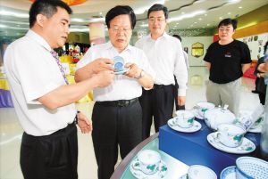昨日,文化部部長蔡武(左二)就寶安文化產業(yè)進行調研,圖為蔡武在觀瀾永豐源陶瓷公司調研。