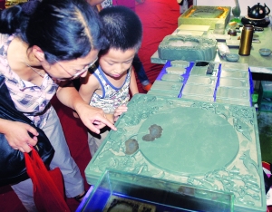 近年來(lái),素有“御硯”之稱的松花石硯市場(chǎng)火爆,引起了市民的收藏?zé)。在民博?huì)2號(hào)展廳,吉林省松花石宮廷硯第一人李大平首次現(xiàn)身民博會(huì),并在現(xiàn)場(chǎng)展示雕刻技藝,精湛的雕刻技法頓時(shí)讓小小的展位前擠滿了市民。