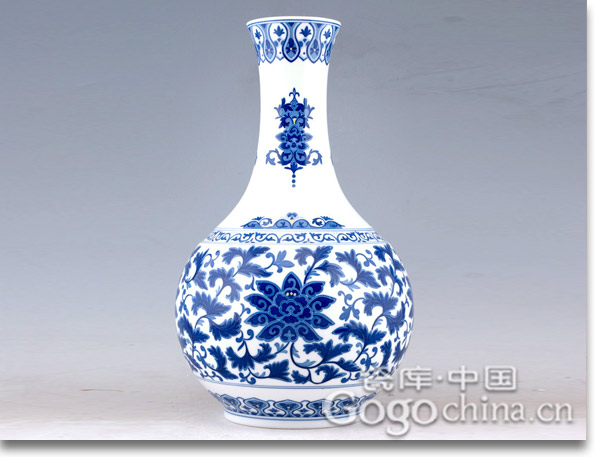 圖:袁述凡大師手繪纏枝蓮紋青花花瓶