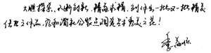 獲得大師稱號后,他欣然揮筆寫下了“藝無止境繼續(xù)攀登,此生無悔永遠感恩”,以此表達自己的心聲。