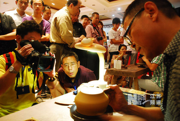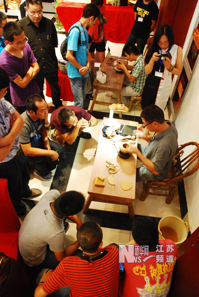 8月20日,各地紫砂“壺迷”在江蘇宜興舉辦的壺友節(jié)上觀摩制壺技藝。