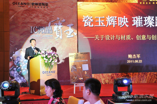 歐神諾陶瓷 “寶玉之夜 文化饕餮”暨IC微晶·寶玉新品巡回發(fā)布于2011年8月22 日在泉城濟(jì)南盛大開幕,來自濟(jì)南的兩百名設(shè)計師與多名貴賓共同見證了歐神諾陶瓷為寶玉新品奉上的奢華藝術(shù)盛宴。佛山歐神諾陶瓷股份有限公司董事長鮑杰軍先生、馬來西亞國師虛一子大師、銘石集團(tuán)董事長郭玉琛先生、歐神諾濟(jì)南營銷中心總經(jīng)理王鵬飛先生等隆重出席本次盛會。