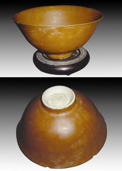 筆者藏有宋代紫定葵口碗一件,高8厘米,口徑7.5厘米,足徑5.5厘米,足內(nèi)壁向下斜削,起到支撐的力度;底心凸突,露胎,細膩潔白,碗壁厚薄適中,內(nèi)外施醬釉,釉面均勻柔和,光素?zé)o紋飾無芒口(見圖)。此器應(yīng)屬宋代定窯中期產(chǎn)品。