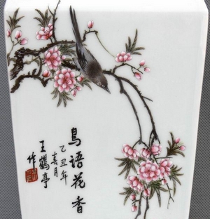 王鶴亭,號桃源笑山人,安徽黟縣人,1921年12月出生。1934年曾在江西陶瓷局學(xué)藝,拜康達(dá)為師。1958年后進(jìn)景德鎮(zhèn)藝術(shù)瓷廠畫瓷。