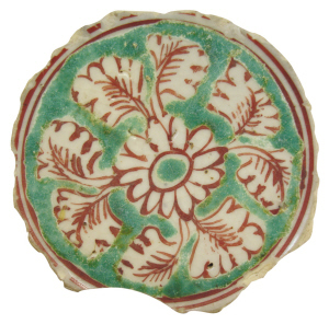 圖2更具有佛教的特點(diǎn),碗心的蓮花是佛教的象征,取其清凈無染之意。佛菩薩的坐處稱蓮座、蓮臺(tái),聚會(huì)處稱蓮池。而碗底有一紅彩梵文“吽”字,此字出自“六字大明咒”,或稱“六字真言”,即“嗡嘛呢叭咪吽”,藏傳佛教認(rèn)為,常持誦六字大明咒,可以消除病苦、刑罰、非時(shí)死之恐懼,壽命增加,財(cái)富充盈。所以,在藏區(qū)常?梢钥吹饺藗兪謸u轉(zhuǎn)經(jīng)筒,口誦“六字真言”的景象。